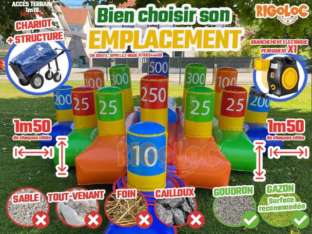 Découvrez notre lancer d’anneaux gonflables, un jeu fun et dynamique pour tous les âges ! Idéal pour animer vos fêtes, il garantit des moments de plaisir en extérieur. Simple, coloré et ludique, il est parfait pour vos activités estivales !