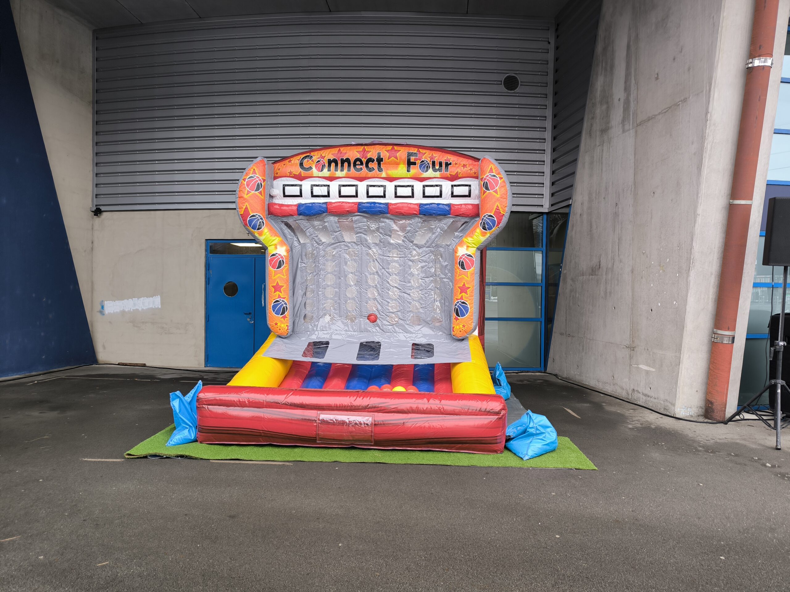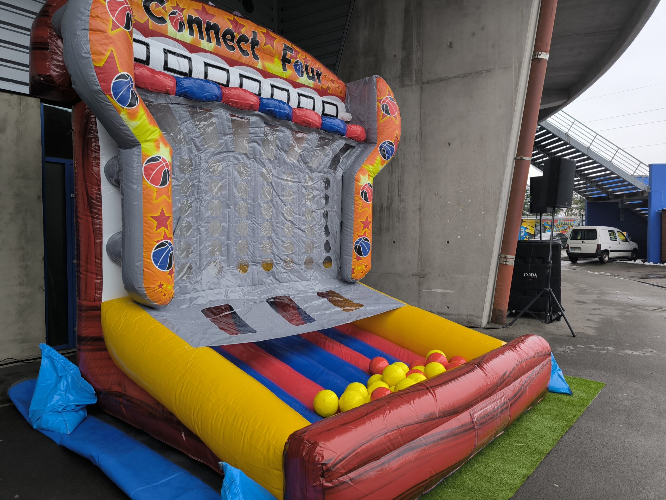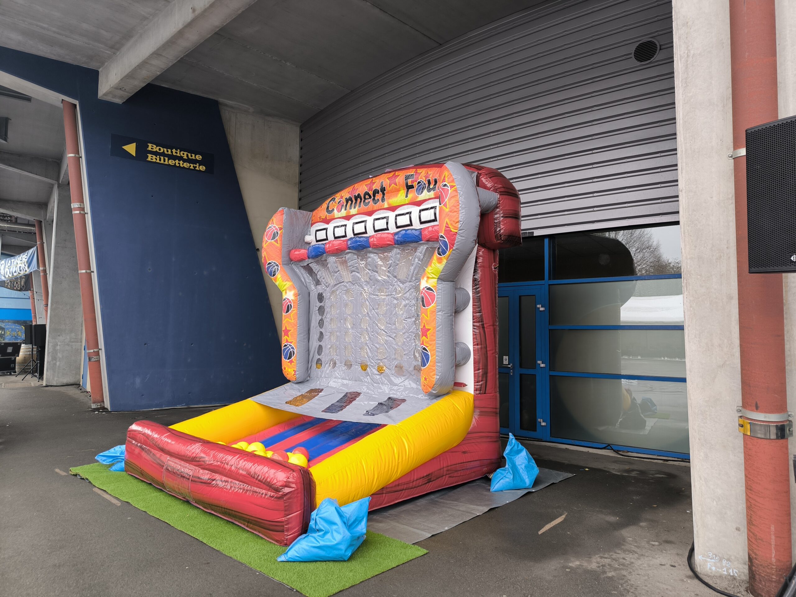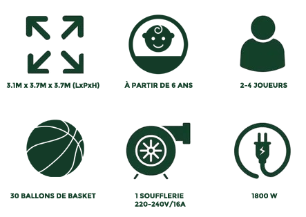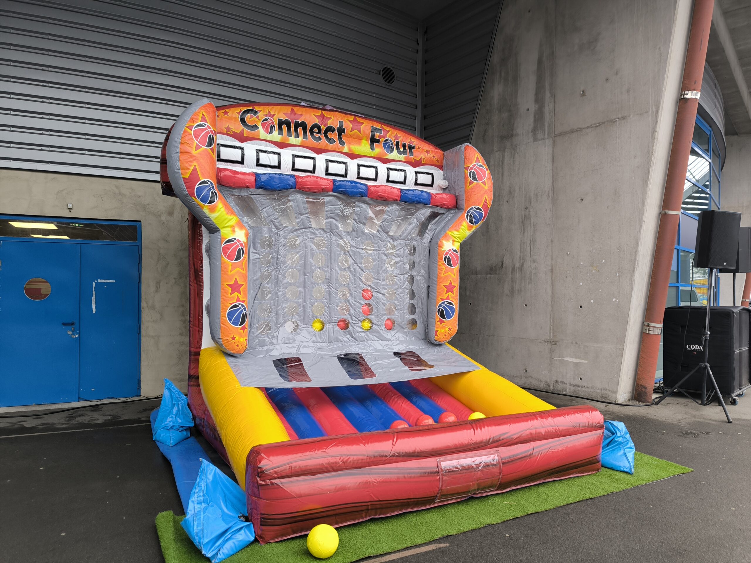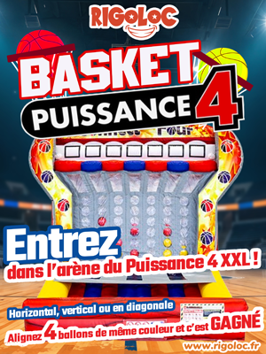 Le but ? Aligner 4 ballons de la même couleur à l’horizontale, à la verticale ou en diagonale. Simple ? Pas vraiment ! Car ici, pour placer votre ballon, il faut viser juste et marquer dans le bon panier de basket… sur un terrain gonflable ! Et oui, ça bouge, ça rebondit, ça surprend — il va falloir être aussi malin que précis !